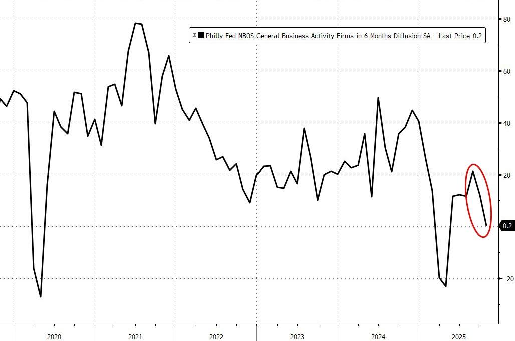 Desperate for any information amid the government shutdown-invoked vacuum of macro data, this morning we get a glimpse of more ‘soft’ survey data, showing that Non-Manufacturing activity in the Philadelphia Fed region softened overall,