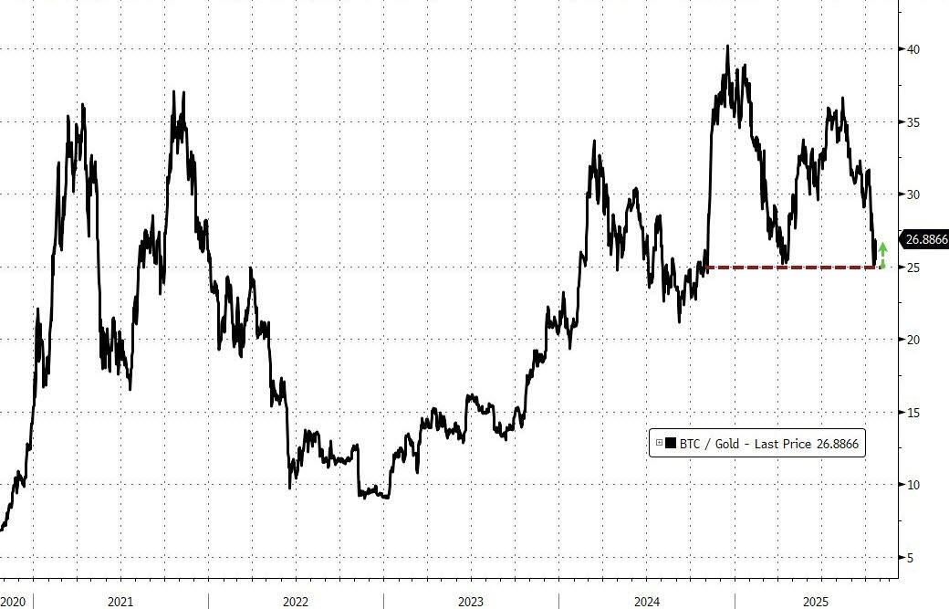 Yesterday’s sharp gold selloff coincided with a strong intra-day bounce in Bitcoin. This was presumably a sell gold, buy Bitcoin flow.