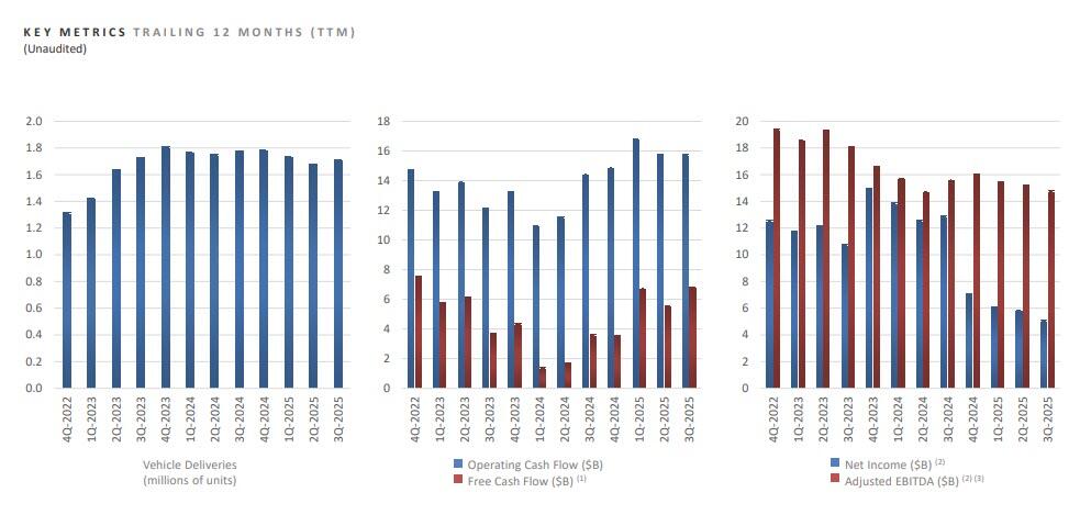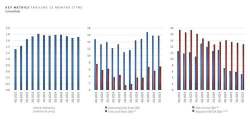 Not surprisingly, the tax-credit expiration led to an EV buying spree which allowed Tesla to clear virtually all the excess vehicles produced in the first half of the year during the third quarter. The results was a massive, one-off working capital release of $2.1 billion, teeing up the big free cash flow of $3.99 billion.