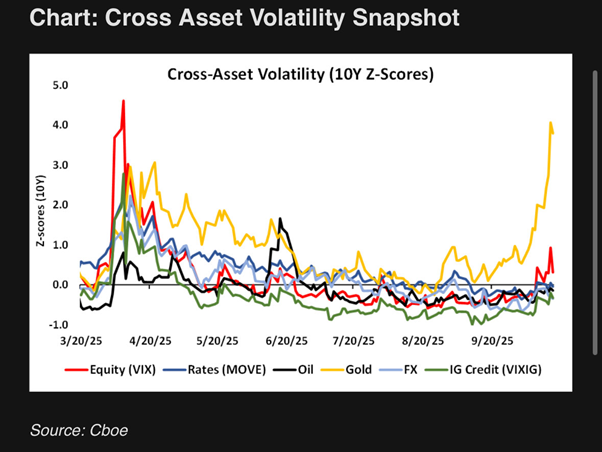 The morning of October 21, SpotGamma Founder laid out this exact scenario – ahead of the drop: “This is clearly a ‘stock up, vol up’ paradigm… vol is likely to contract if/when gold prices contract.”