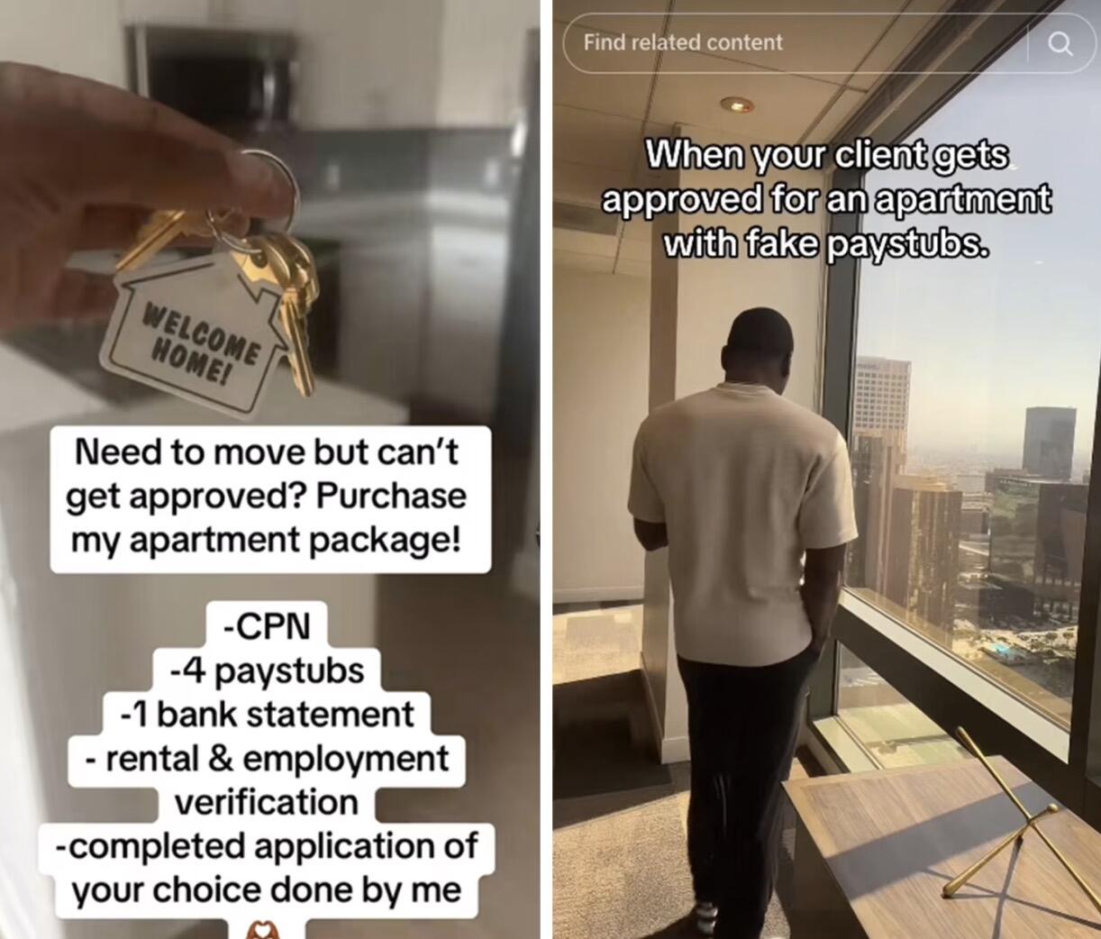 Social media has fueled the trend. TikTok influencers promote “rental packages” with doctored pay stubs, false employment letters, or fake Social Security numbers. One influencer bragged, “When that apartment package got you approved for your luxury apartment in two weeks even though you had two evictions and a 500 credit score.”