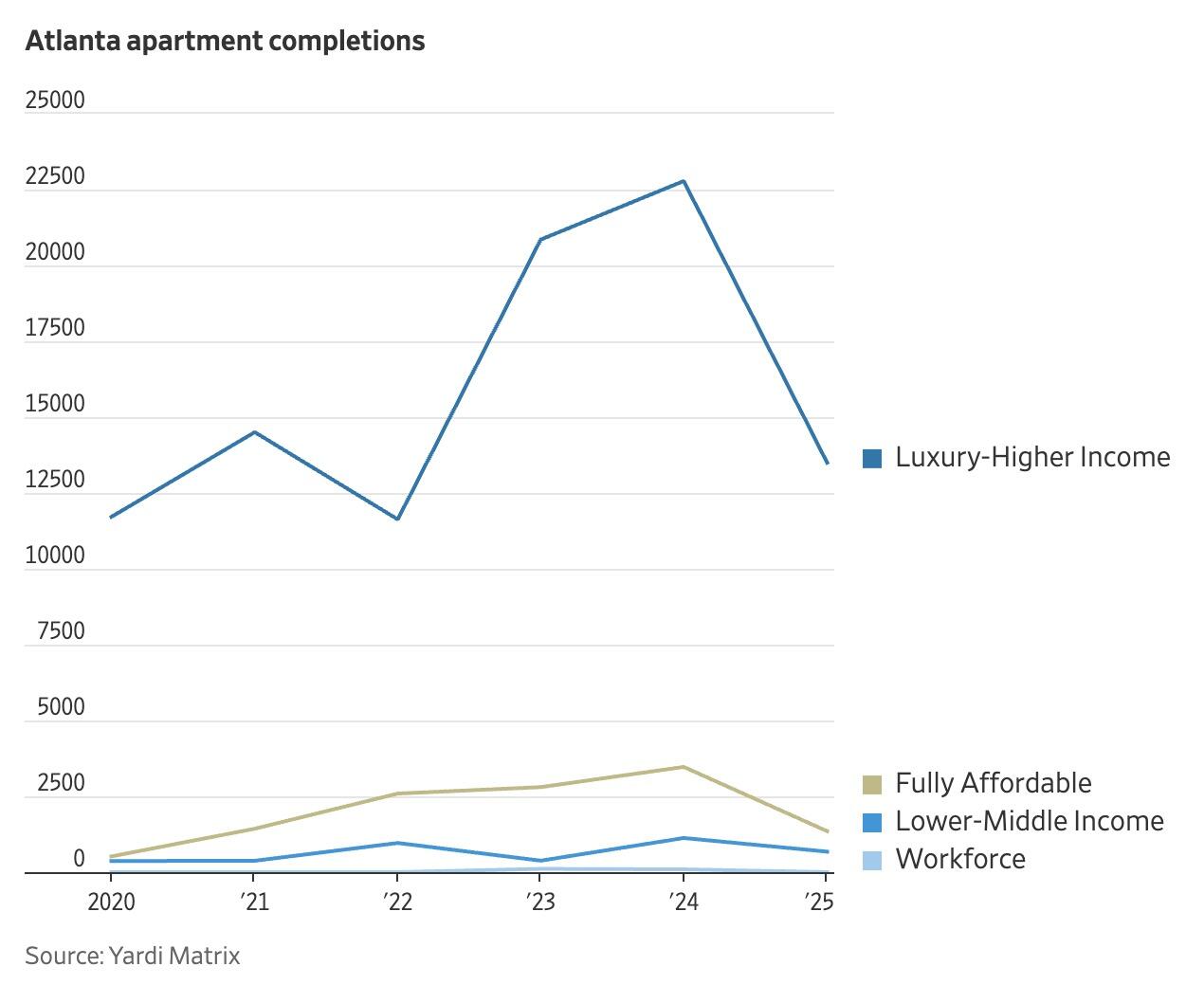 The WSJ writes that the rise stems from a mix of factors: a glut of high-end apartments after Atlanta’s building boom, shrinking affordable housing, and advancing technology that makes falsifying documents easy. Between 2018 and 2023, the region lost more than 230,000 affordable rental units.
