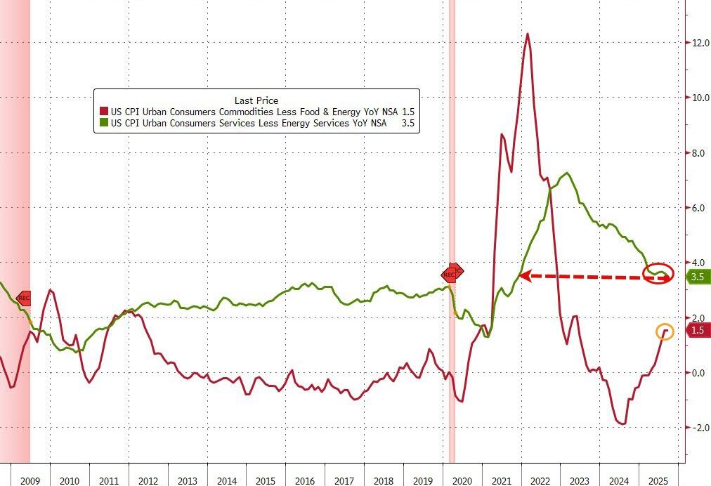 Summing up September’s (delayed) data, Services inflation slowed to its weakest since Nov 2021 and Goods inflation was flat at +1.5% YoY…