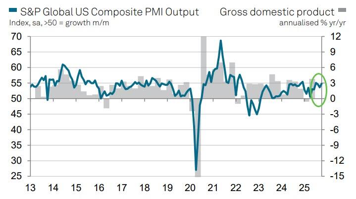 US business activity growth accelerated in October to the second-fastest so far this year, according to early ‘flash’ PMI data, accompanied by the largest rise in new business seen in 2025 to date.