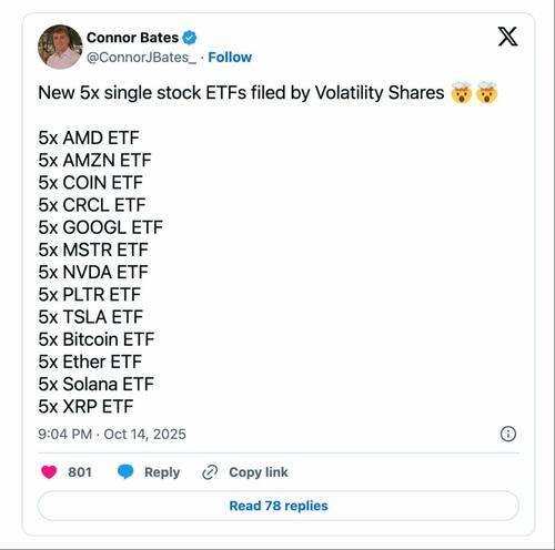 “[Retail] Leverage is all the rage. In the burgeoning market for perpetual futures, cryptocurrency traders can magnify their gains 10-fold, 20-fold, even 100-fold—or, of course, be wiped out. You thought ETFs that double or triple the daily gains or losses on single stocks and cryptocurrencies were extreme? A spate of new filings seeking Securities and Exchange Approval would quintuple the daily gains or losses on such stocks as Coinbase, Nvidia, Palantir, and Tesla—and cryptocurrencies like bitcoin, Solana, and XRP. If assets fall sharply in a single day, the ETF could go to zero.“