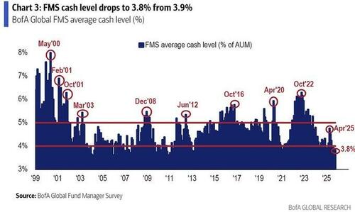 However, for prices to rise, additional buying power is required, and as shown, clients are running low on investible cash.
