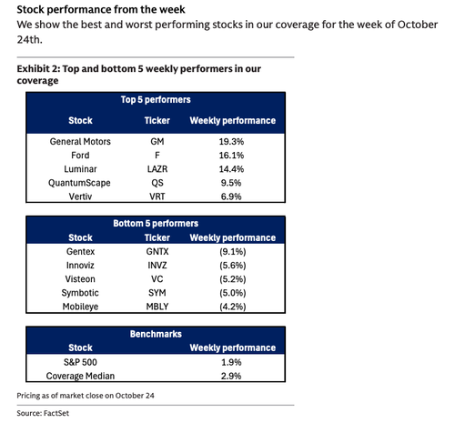 Goldman analysts highlighted several critical themes, including AI, autonomy, and robotics, alongside solid US auto demand, after last week’s earnings from Tesla (TSLA), General Motors (GM), Ford (F), Visteon (VC), Gentex (GNTX), QuantumScape (QS), Mobileye (MBLY), Amphenol (APH), and Vertiv (VRT).