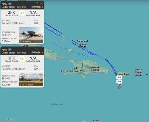 Previous to this fresh run, last Thursday was the last publicly known time that US bombers flew near Venezuela.