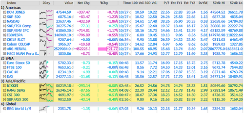 World equity stock indexes