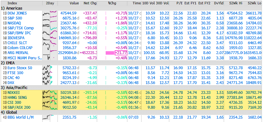 World equity stock indexes