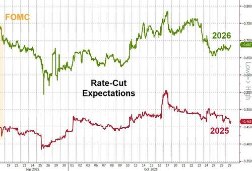 More notably, rate-cut expectations have barely changed since the last FOMC with 46bps of cuts priced in for 2025 and 69bps more priced in for 2026…