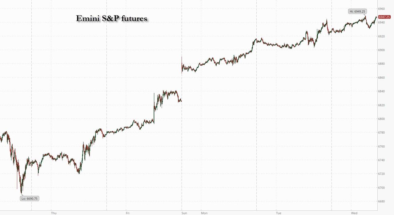 Futures Push To New Record, Nvidia Above $5 Trillion Ahead Of Fed Rate Cut And Mag 7 Earnings