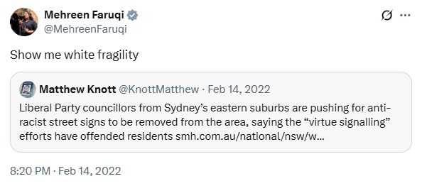 “Senator Faruqi has a documented history of statements that appear to target and demean White Australians, most of whom belong to the nation’s founding and majority population of Anglo-Celtic descent,” he said.