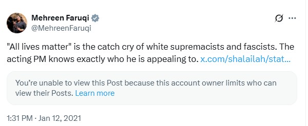 Header image: Left, Mehreen Faruqi during her tirade (Parliament). Right, being asked if she thought all White people were racist (Chriscoveries).