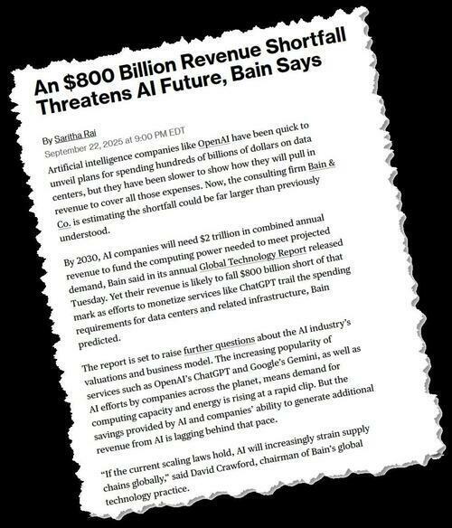 Three weeks ago, in “The Stunning Math Behind The AI Vendor Financing “Circle Jerk” (which in turn referenced our analysis from late July when seemingly nobody cared who will fund this tidal wave of looming datacenter spending), we explained how even an optimistic outlook on the AI industry and its gargantuan capex needs, reveals that there is an $800 billion funding need by the end of the decade.
