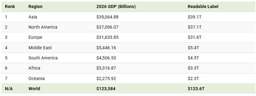 | Rank | Region/Country | GDP (Billions USD, 2026) |