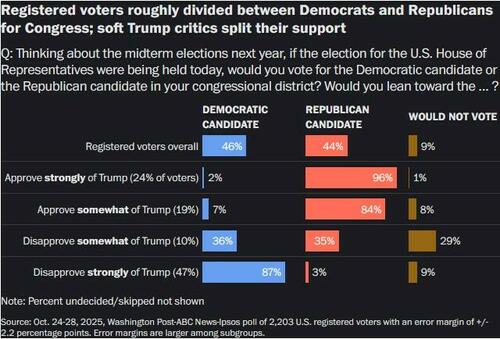 That said, a WaPo poll released Sunday suggests “little evidence that negative impressions of Trump’s performance have accrued to the benefit of the Democratic Party,” and there’s only a 2-point spread between R’s and D’s with Democrats leading.