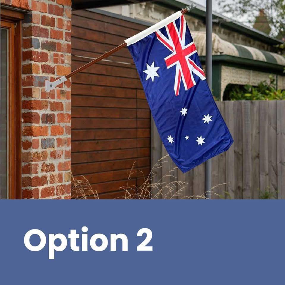 Header image: Left, a flagpole in Maitland. Right, one of the free flag options (Maitland Council).