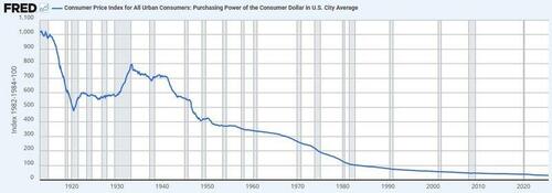 Carlin’s disturbingly accurate description of America from two decades ago is truer now than it was then. “They” have accumulated trillions more, while the rest of us have seen our standard of living relentlessly decline due to the Federal Reserve manufactured inflation – designed to accelerate stock market gains and leave the masses destitute. The USD has lost 97% of its purchasing power since the Creature from Jekyll Island slithered from the swamps of DC in 1913. Your 2% to 3% annual raise is consumed by the 5% to 10% increase in things you need to live (food, energy, medical care, education) every year. That is why the Bottom 50% has an average net worth of $54,300.