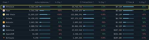 Ethereum fees up 83% weekly, signalling strong onchain demand.