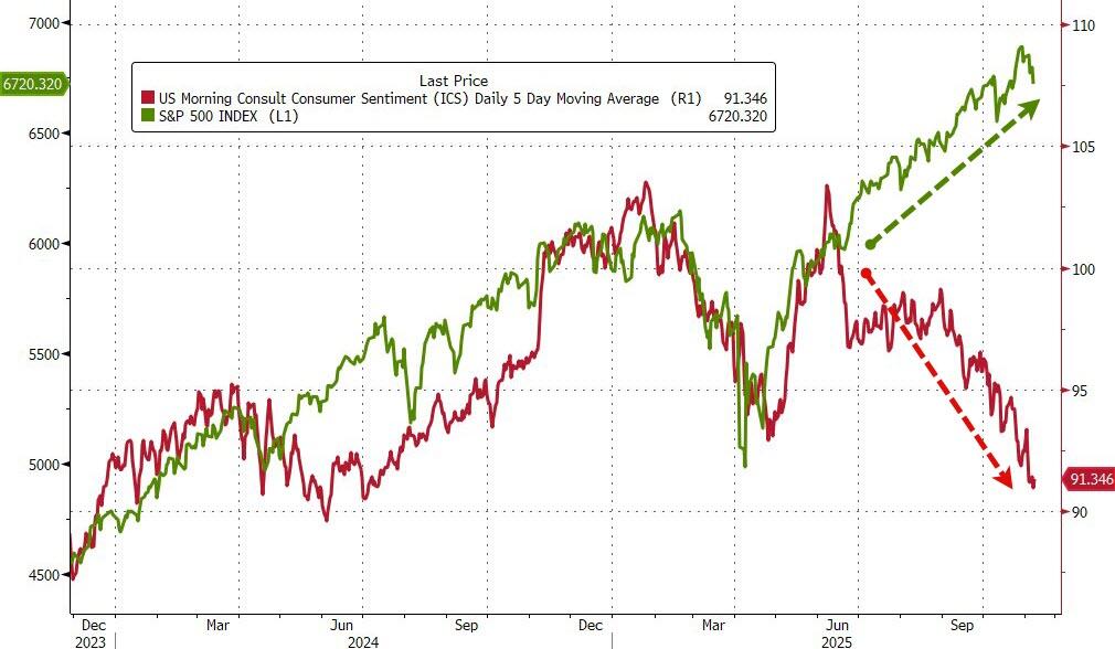 …and amid an almost complete vacuum of ‘hard’ economic data due to the government shutdown, ‘soft’ sentiment survey data continues to punch above its weight when it comes to market-moving news.