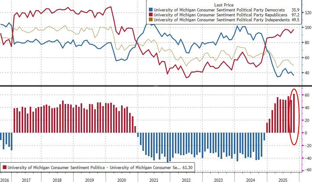 Finally, the propagandists over at UMich were forced to recognize one thing: consumers with the largest tercile of stock holdings posted a notable 11% increase in sentiment, supported by continued strength in stock markets.