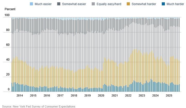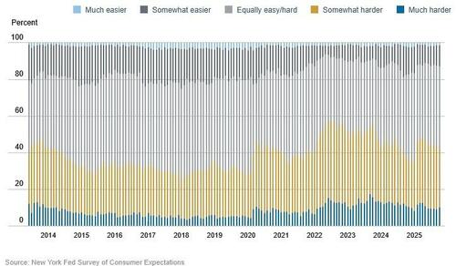 Yet perceptions of credit access improved, as the share of households saying it’s harder to get loans fell to the lowest level since 2022.