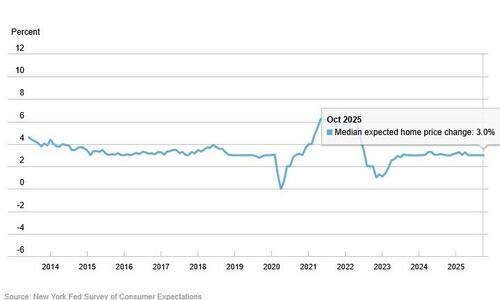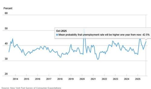 The data will worsen the growing (political) divide among Fed voters as signs of weakness in the job market pile up even as inflation expectations continue to drop (and ironically confirm that Trump was right to slam Powell for waiting too long to cut rates). Last week, the Fed lowered interest rates by a quarter percentage point, but a number of policymakers have since voiced concerns about extending their easing cycle saying concerns about inflation were greater than employment worries.