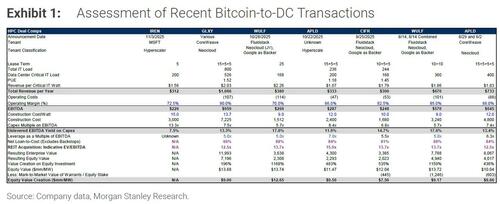For those eager to jump down the rabbit hole with Morgan Stanley and contemplate – or trade – the conversion of bitcoin miners into data centers, the bank has an extended discussion of this particular opportunity, from which we excerpt below: