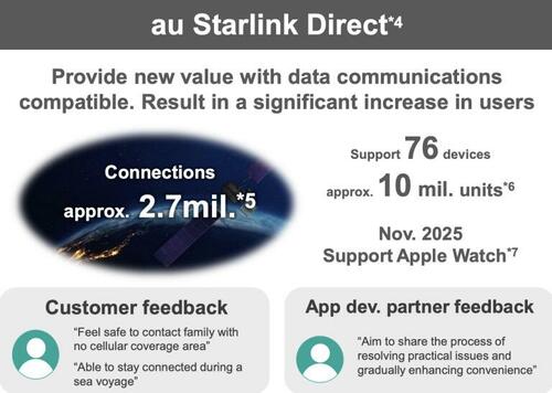 “The number of [Starlink] connections has reached approximately 2.7 million with 76 compatible models and approximately 10 million devices. And as announced today, au Starlink Direct now supports Apple Watch.”https://t.co/BSLvkSEp0x via KDDI