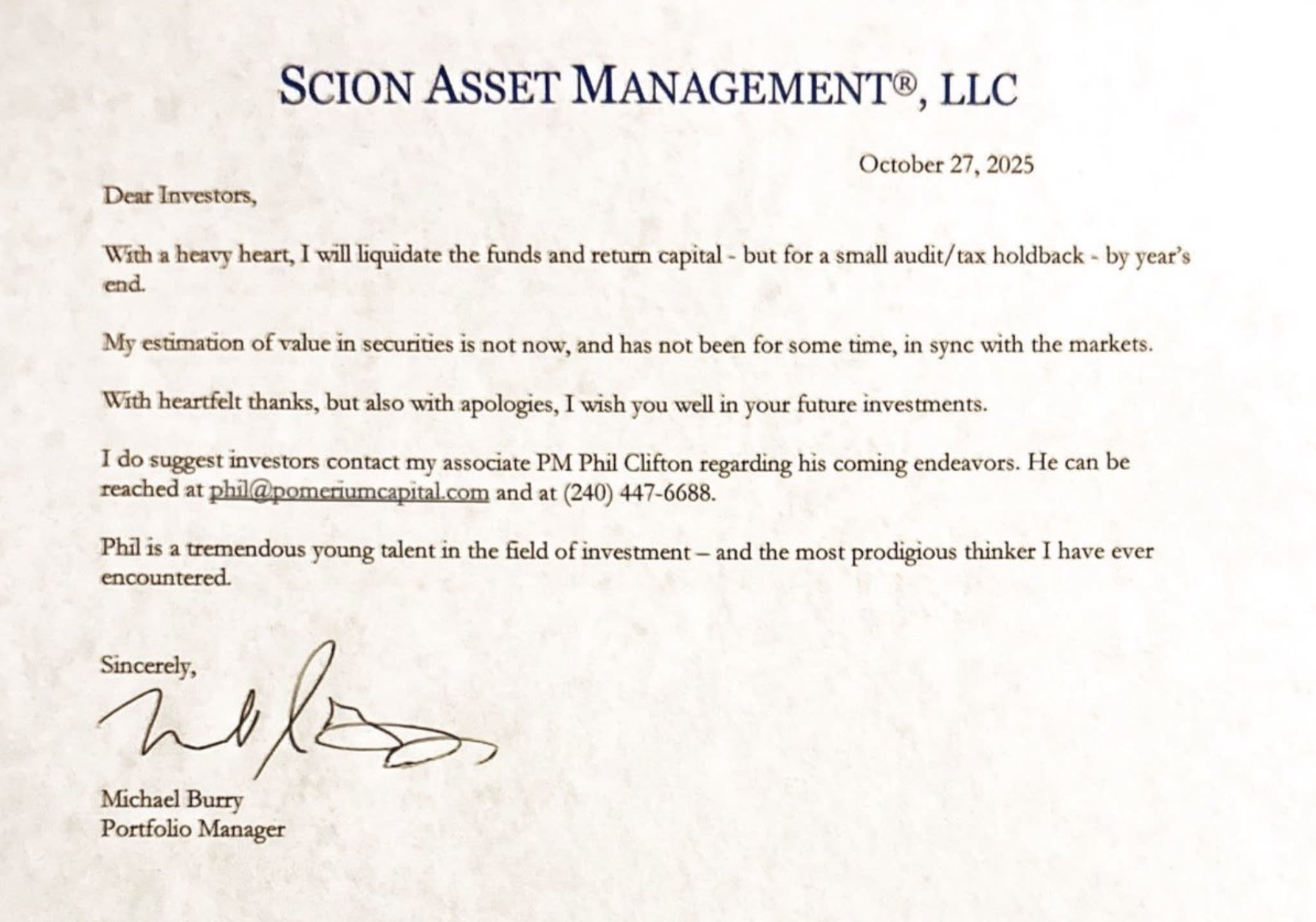 Burry stepping back, deregistering his fund, walking away from managing outside capital — that doesn’t signal weakness. It signals awareness. It signals someone looking at conditions so distorted, so liquidity-fattened, so unmoored from fundamentals that the only rational choice is to stop playing until the distortions resolve themselves.