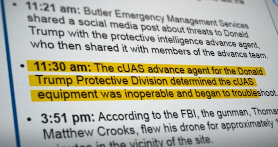 - On the day of the attack, Crooks conducted surveillance at Butler – flying a drone over the rally site for 11 minutes – right as the Secret Service’s anti-drone system was mysteriously down.