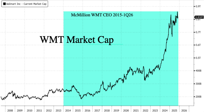 Will Walmart get to a trillion-dollar market capitalization before McMillon’s exit?