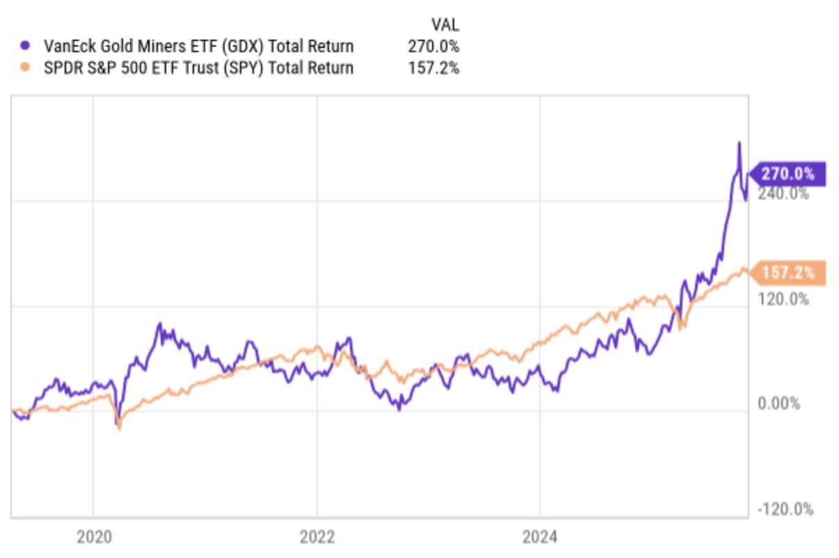 Back in April 2019, a CNBC anchor wrote that perma-bears were “ridiculous people”. Since then, the total return on gold mining stocks is 270% versus the S&P 500 at 157.2%. Sure, in some respects Josh was right because shorting the S&P outright at that time would’ve been a loser—but stepping away from U.S. equities and into gold miners, for example, would have been a winner.