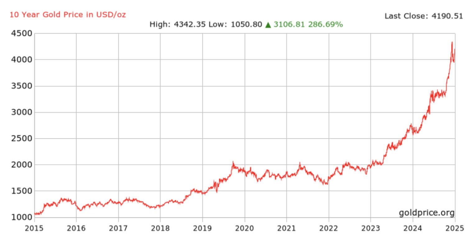 I’ve seen theories ranging from “they’re weakening the dollar to bring manufacturing back to the U.S.” to “the dollar is dead and gold is exposing the corpse,” to “the BRICS will switch to a gold-backed currency and dump Treasuries,” to “stablecoins are about to become the primary buyers of U.S. debt.” I don’t know which of these scenarios is most likely. All I know is that the price of gold—now making a generational move higher—is signaling that we’re accelerating toward some kind of monetary breaking point.