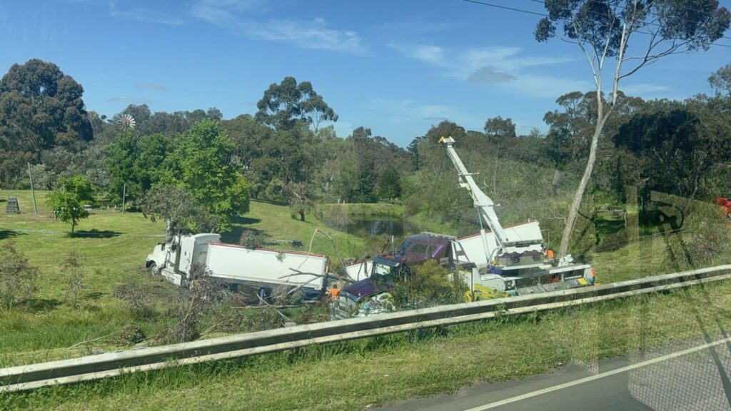 “Something’s gone wrong, and it’s gone across the Glenelg Highway, careered down an embankment into what’s known as Stewart Park, and come to rest at the bottom of a billabong.