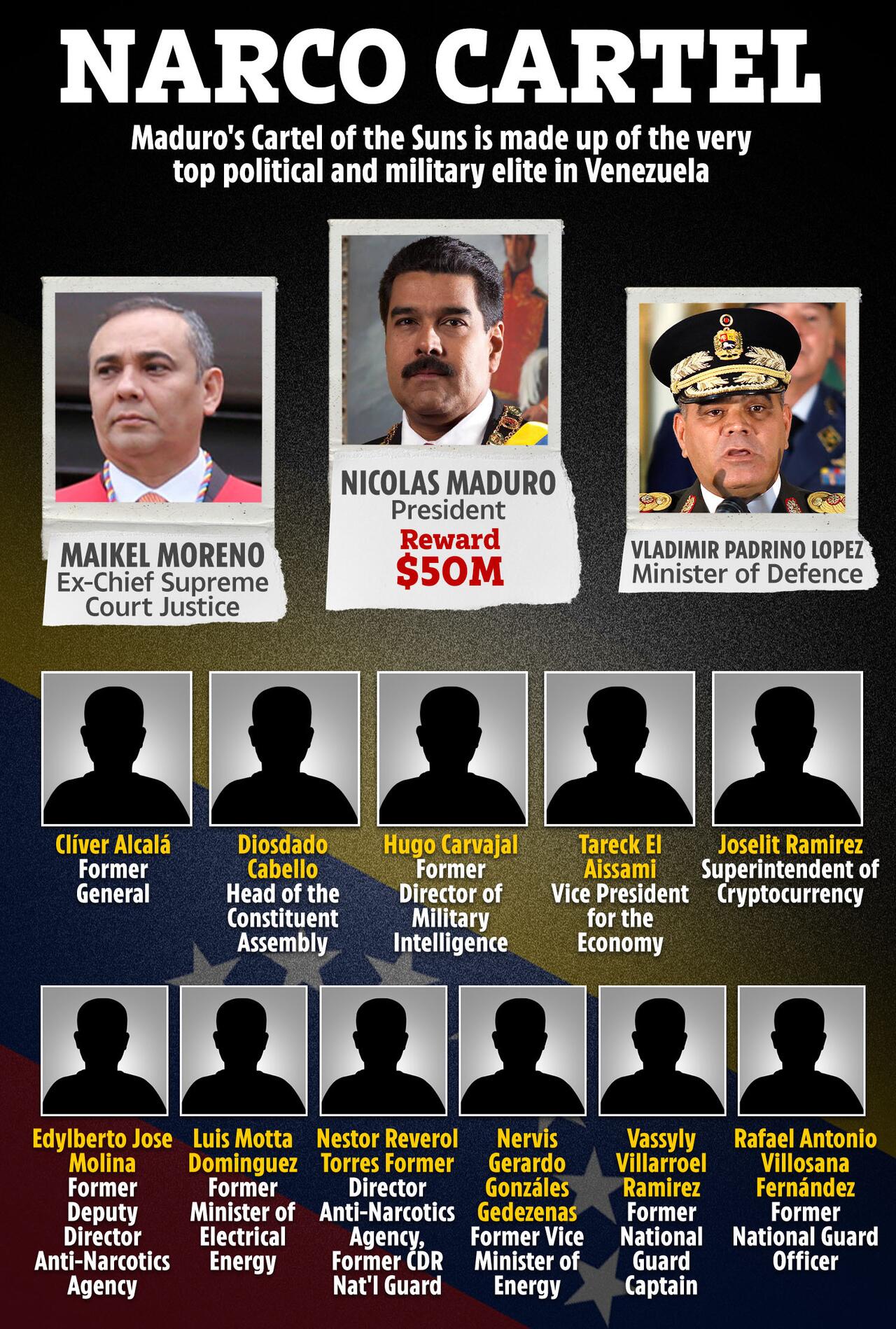 “Based in Venezuela, the Cartel de los Soles is headed by Nicolás Maduro and other high-ranking individuals of the illegitimate Maduro regime who have corrupted Venezuela’s military, intelligence, legislature, and judiciary,” the official US statement said. “Neither Maduro nor his cronies represent Venezuela’s legitimate government.”