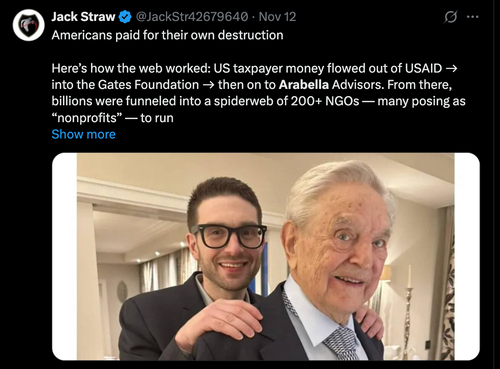 X user Bad Kitty Unleashed noted, “Arabella reorganizing. Why, because everyone now knows that Arabella handles money for Soros Democracy Alliance APO partners? Screenshot – Soros democracy Alliance document. Sixteen Thirty and New Venture funds are Arabella. They collect and disburse the funds. Any DOJ with half a brain would watch this.”