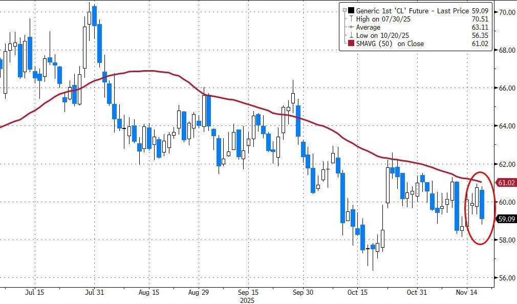 WTI fell to around $59 overnight and is stabilizing there after the official data report…