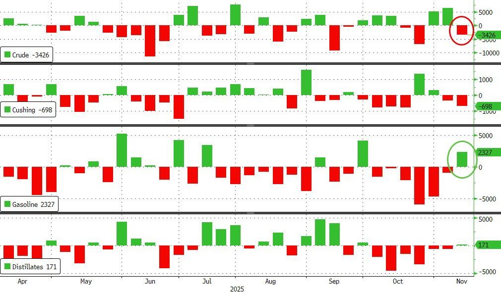 Shocker: while API reported a big build, the official data showed a large crude inventory drawdown last week. Additionally, Gasoline stocks rose for the first time in seven weeks…