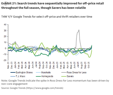 Roach showed that Google Trends data for off-price retailers has improved this fall.