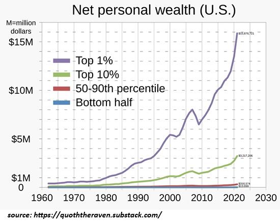 While our public infrastructure has decayed, private wealth has soared from $60 trillion in 2010 to $167 trillion in 2025. Measured by overall health and security, the top 10% are doing splendidly, having accumulated the majority of the $100 trillion in private wealth gains, while the bottom 60% are experiencing decay and decline.