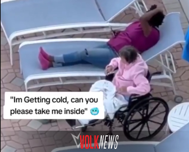 The response? The caretaker plops down on a lounge chair, stretches out like she’s on vacation herself, and starts scrolling her phone. The old woman is left shaking in the wind while the caretaker suns her feet and ignores every plea.