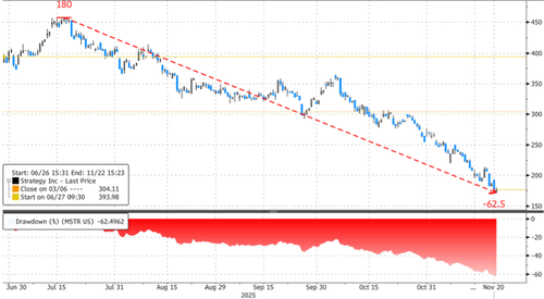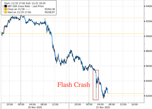 As we joked earlier this week about the overnight Bitcoin dump – the Korean Krypto Kamikazes – the selling has continued with no clear catalyst. The largest crypto asset briefly plunged to $81,569 and is now on track for its worst month since 2022.