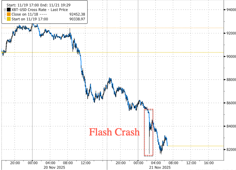Bitcoin Flash-Crashes Below $82,000 As UBS Says A “Flush” Is Needed Before “Turning More Constructive”