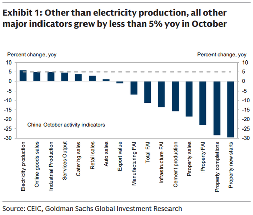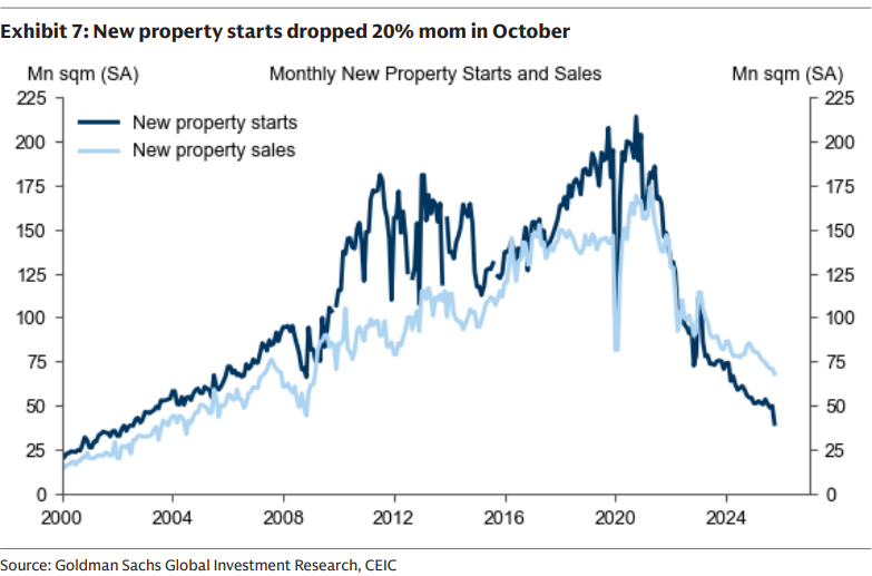 And while China tries to come up with a fix, the October economic data showed widespread weakness, especially in property and investment. Most major indicators grew less than 5% year-on-year, and property new starts declined nearly 30% yoy. We think the government may be reserving policy support for Q1 next year, since this year’s growth target appears broadly achievable.