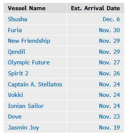 Most of the tankers are heading either to the Jamnagar refinery or to Rosneft-linked Nayara Energy’s Vadinar port. Delivery dates range from the end of November and into December. Should the ships fail to arrive by Nov. 21, they could idle off India’s shores while they consider their next moves, which can include ship-to-ship transfers to other tankers and diversions to new destinations such as the waters off Malaysia or even further to China.