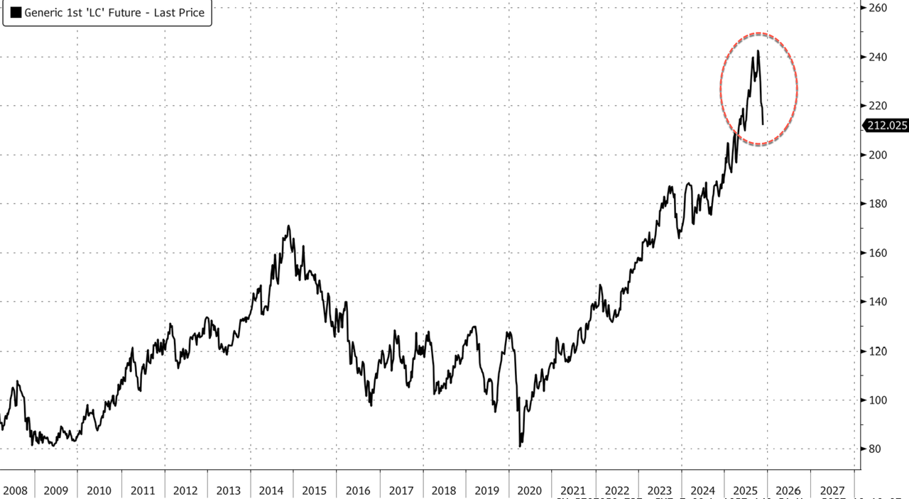 Live cattle futures are on track for their steepest monthly decline since the early months of the Covid pandemic, as expectations around President Trump’s Operation Affordability appear to be pressuring prices.