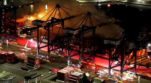 All crew members are safe and no injuries have been reported, but four of the port’s seven terminals have halted operations.