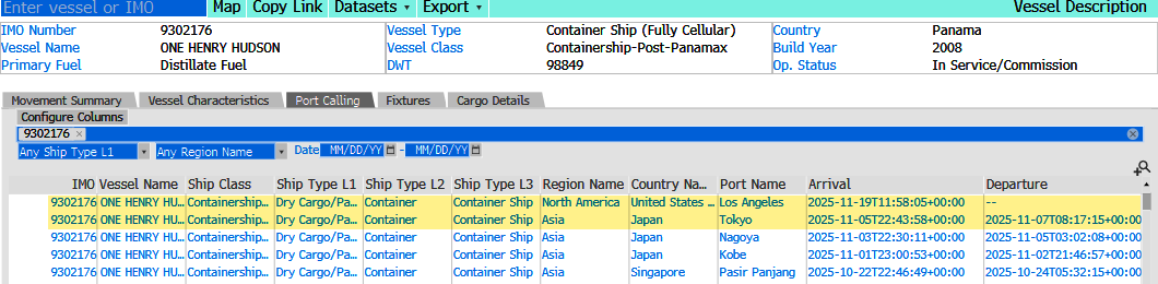 Ship-tracking data from Bloomberg shows the One Henry Hudson departed Tokyo before heading to the Port of Los Angeles.